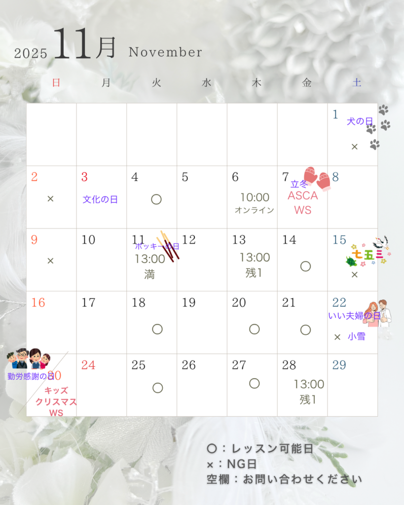 ◎今年も、クリスマスが楽しみになるレッスン、各種予定しています