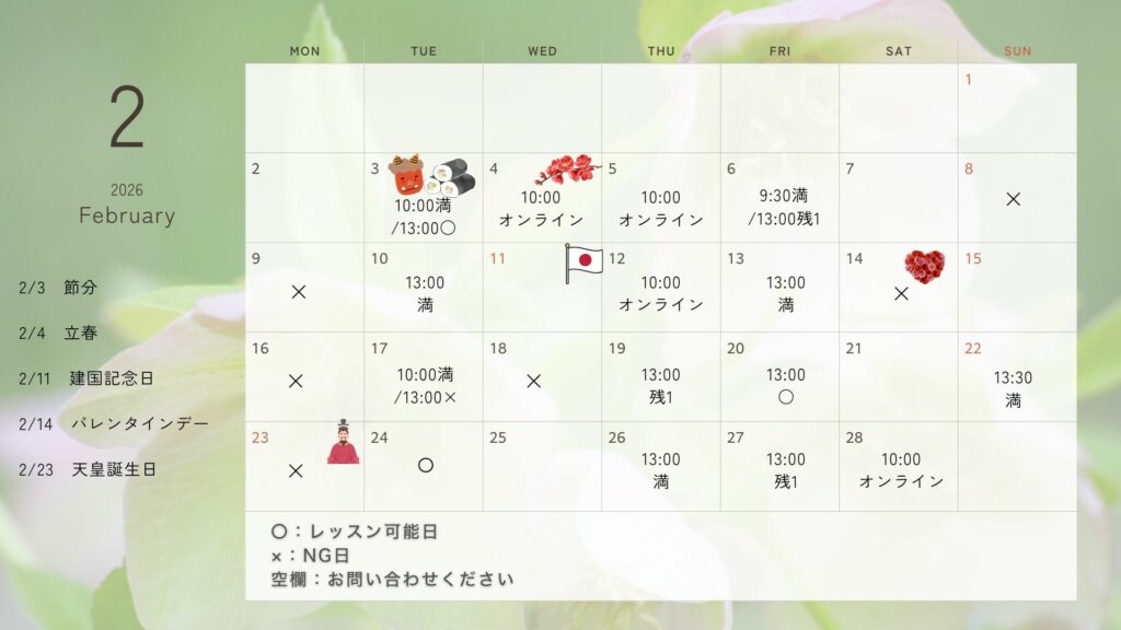 ・個別レッスンの場合:1,000円/30分(平均1.5時間程度で数作品分!一緒に選んでます)