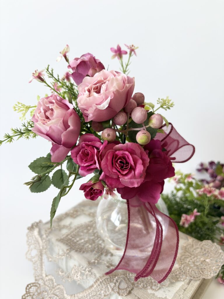 アーティフィシャルフラワー(造花)でお好きに束ねていただきました𓇬