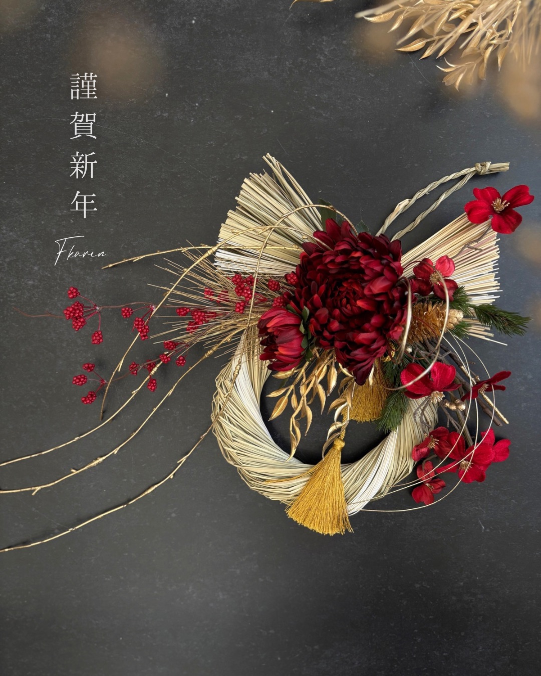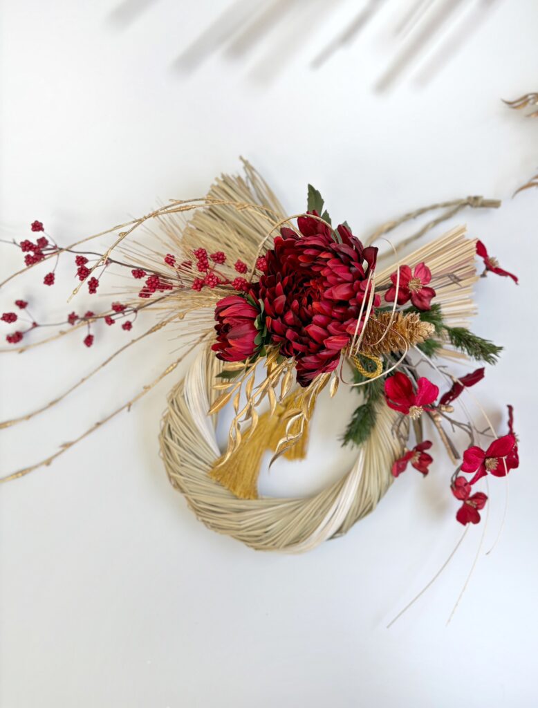 毎年作っている紅 × ゴールドの王道しめ飾り