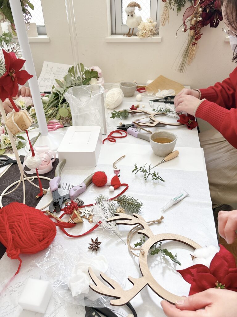 かわいいトナカイリースが完成したのはもちろん、