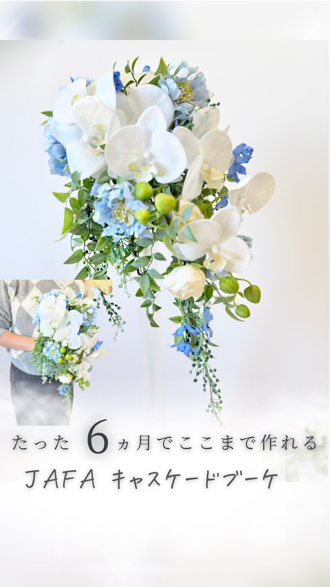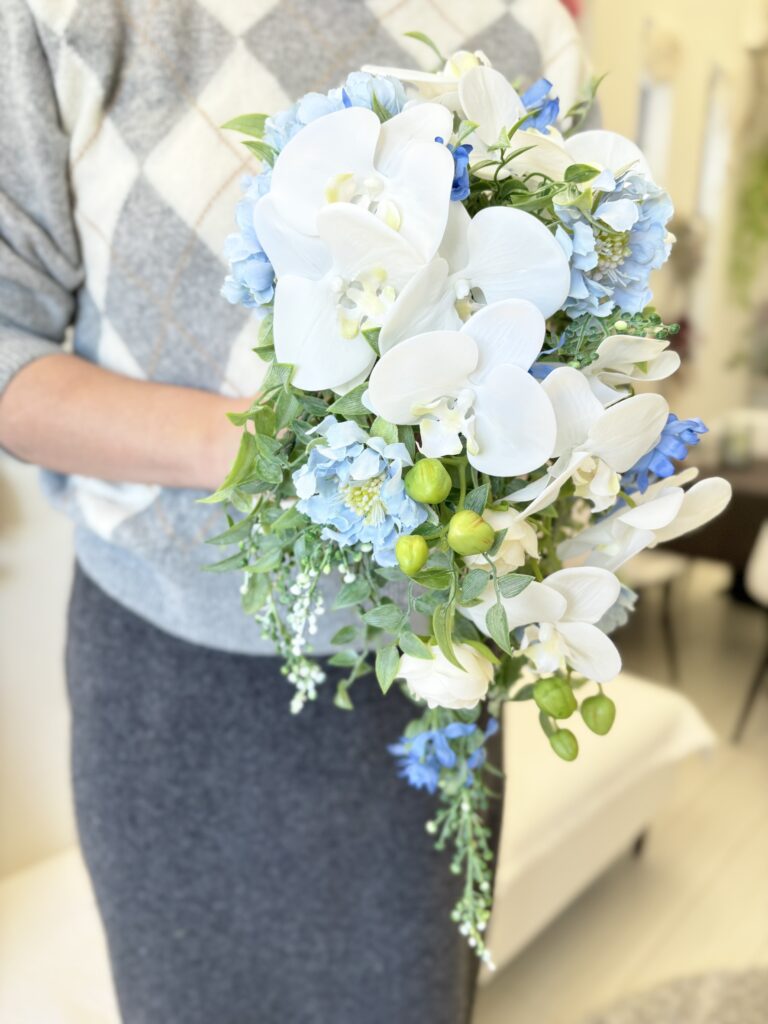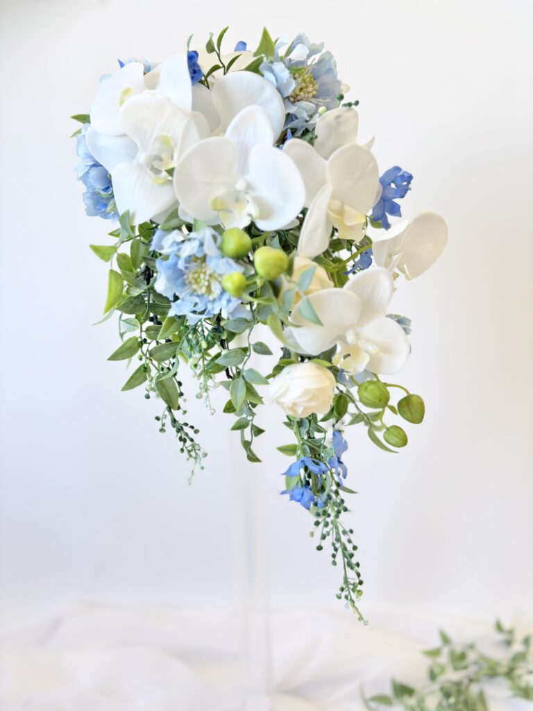 今回は流れ落ちるデザインのキャスケードブーケ⢄⡱༶