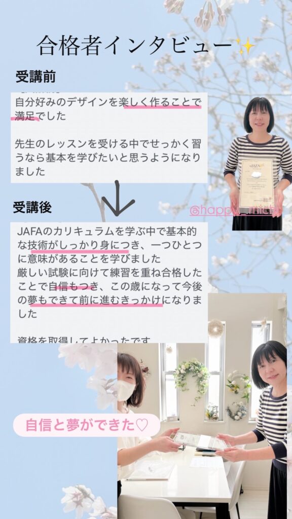 ※資格が欲しい方・さらにトータルな技術と知識を学びたい方はJAFA資格取得コースへ👇