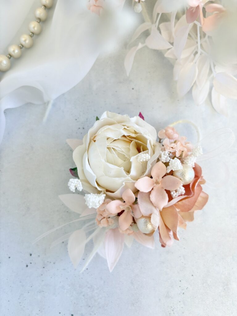 「結婚式のお洋服に合うコサージュを作りたい」と