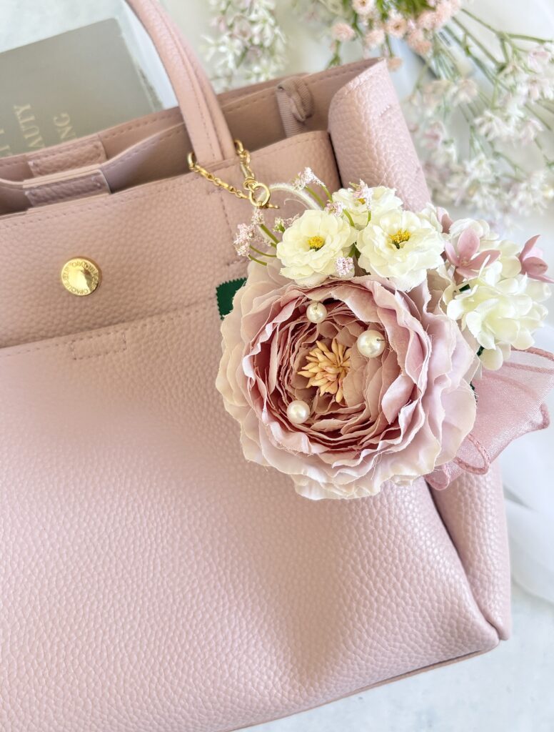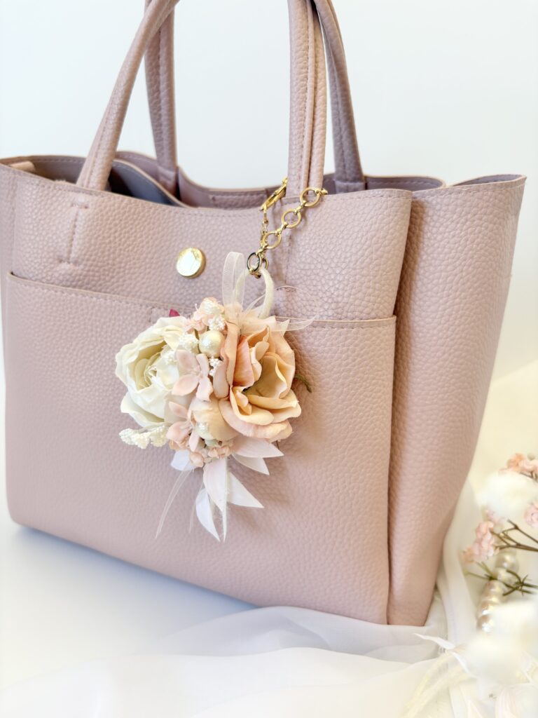 バッグチャーム金具も付けて、式後はバッグコサージュとして大活躍間違えなし𓇬
