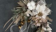 クリスマス フローズンジュエルリース 冬の輝きを閉じ込めた、特別なクリスマスリースホワイトシルバーの上品な組み合わせに、羽やビーズがきらめく大人エレガントなリースですアーティフィシャルフラワー(造花)のため、ずっと美しく、長く飾っていただけます 王道クリス... クリスマス